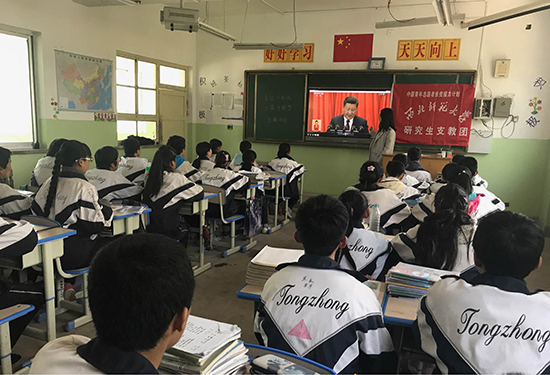 西北师大第六届“中国青年志愿者扶贫接力计划”研究生支教团的12名志愿者们分别在甘肃省武威市天祝藏族自治县第二中学、定西市陇西县通安中学和通渭县陇山学校,以不同形式学习了党的十九大精神,用实际行动续写着西部志愿者的青春篇章。